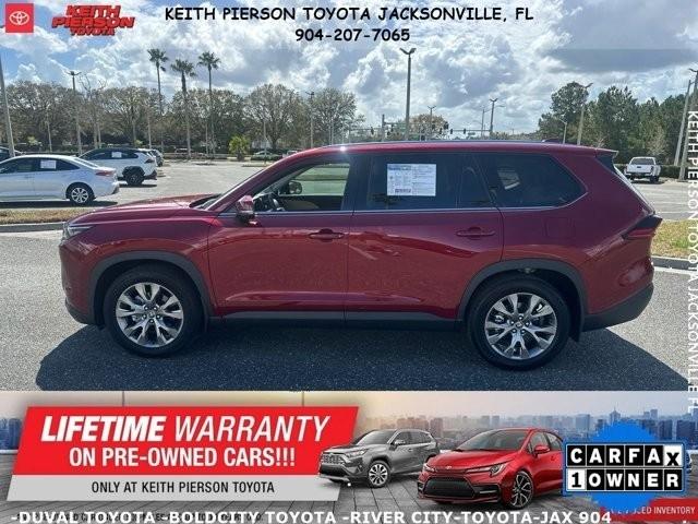 Buckle up and get ready to turn heads in the stunning Ruby Red Flare 2026 Toyota Grand Highlander! This beauty is packing a powerful punch with a 2.4L 4-Cylinder Turbo engine that will have you cruising with ease. The Direct Shift 8-Speed Automatic transmission ensures a smooth ride every time, while the automatic full-time all-wheel drive keeps you steady on the road. Whether you're towing equipment or taking on tricky terrain, this Highlander has got you covered with trailer sway control and hill descent control.With its sleek black bodyside cladding and LED projector beam headlights, you'll be sure to stand out from the crowd. The spacious interior features luxurious leatherette trim and a power liftgate for easy access to the cargo area. Stay connected on the go with Bluetooth wireless phone connectivity and Wi-Fi hotspot capabilities.